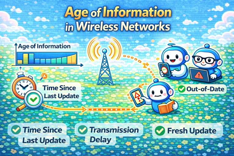 Age of Information(AoI)已成為評估即時狀態更新系統中新鮮度(freshness)的核心指標,特別適用於感測網路、物聯網(IoT)與即時監控等應用場景。與傳統以延遲或吞吐量為主的效能指標不同,AoI 同時刻畫了資訊更新的頻率與時效性,能更精確地反映接收端所掌握狀態資訊的有效程度。在多節點隨機接入環境中,媒體存取控制(MAC)機制對 AoI 的影響尤為關鍵。Slotted ALOHA 作為一種結構簡單且廣泛應用的隨機接入協定,其在時槽化傳輸下所引發的碰撞、重傳與封包成功率,會直接影響更新封包的到達過程,進而改變系統的 AoI 行為。因此,近年研究逐漸聚焦於在 Slotted ALOHA 架構下,分析不同存取機率、節點數量與封包產生策略對 AoI 的影響,並探討如何透過調整傳輸機制或引入跨層設計,以在維持系統穩定性的同時最小化平均 AoI 或峰值 AoI。這類研究不僅為隨機接入網路提供了新的效能最佳化視角,也為低功耗、即時性導向的 IoT 系統設計奠定了理論基礎。