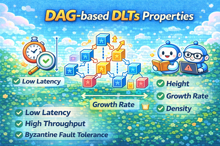 近年來,以有向無環圖(Directed Acyclic Graph, DAG)為基礎的分散式帳本系統被視為突破傳統區塊鏈可擴展性限制的重要方向。然而,現有多數研究多聚焦於特定協議設計或模擬效能比較,對於 DAG 本身在隨機成長過程中所呈現的結構性屬性,仍缺乏系統化且可解析的理論分析。事實上,DAG 的拓撲演化直接影響交易確認延遲、系統穩定性與安全性評估,其行為不應僅被視為實作細節,而應被視為可被建模與量化的核心研究對象。基於此,我們將 DAG 視為一個隨機動態系統,著重分析其關鍵結構屬性,包括交易高度(height)、成長速率(growth rate)、節點密度(density)以及相關的時間與連結行為指標,並探討這些屬性如何隨交易到達率與確認機制參數而演化。透過嚴謹的數學建模與隨機過程分析,我們的研究旨在提供一個通用且可延伸的分析框架,使 DAG 型分散式帳本系統的效能與穩定性評估能夠建立在可解釋、可比較的結構性基礎之上,而非僅依賴特定實作或經驗性模擬結果。
