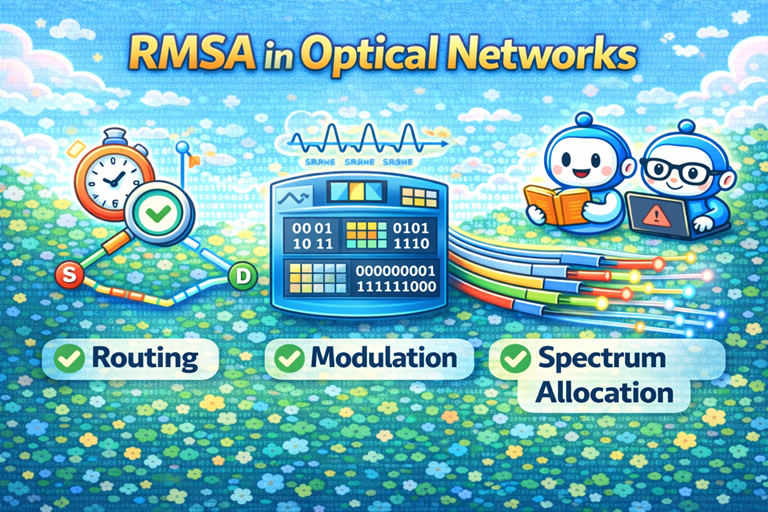 光纖網路具有高速度、高頻寬的特性。在光纖網路上,光徑是傳輸的一個媒介。而全光式網路則為不經由光電轉換即完成傳輸的一種網路架構。在全光式網路中,光徑所使用的波長必需相同。從起點到終點若找不到一條具有相同可用波長的路徑,則連線無法建立。如何找到路徑及相關的波長使用問題,是我們研究室有興趣的題目。